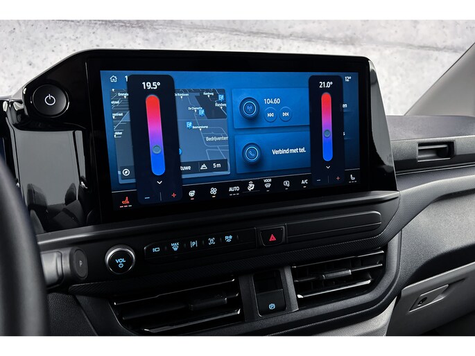 Omdat goed geïnformeerd rijden tegenwoordig om veel meer draait dan alleen snelheid en brandstofpeil, laat het digitale dashboard alle functies zien die u nodig heeft. Met de 360 graden camera op deze auto wordt parkeren in smalle parkeerplekken een makkie dankzij het optimale zicht dat het apparaat levert. Adaptive cruise control houdt de ingestelde snelheid vast en houdt afstand tot het voertuig voor u. Spraaksturing maakt het eenvoudiger en veiliger om deze auto onderweg te bedienen. Deze Ford E-Transit Cust. is 'connected'. Belangrijke functies worden permanent gemeten en zijn uit te lezen via een speciale app, ook op afstand. Ook navigatiesysteem, WIFI-hotspot, automatische airconditioning, DAB+, regensensor en keyless entry zijn aan boord.