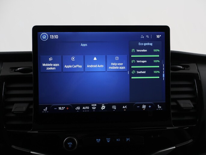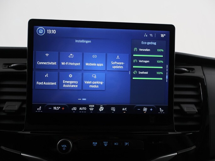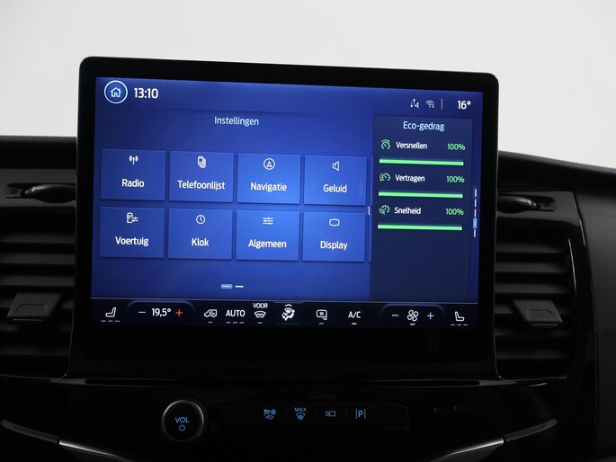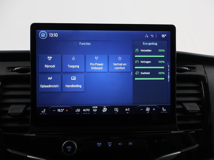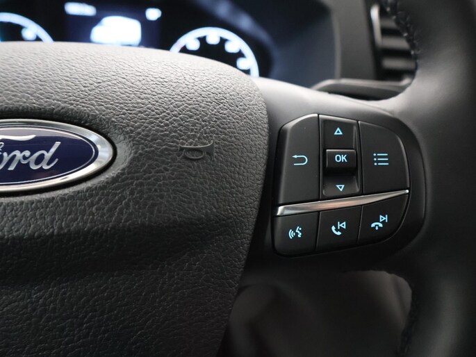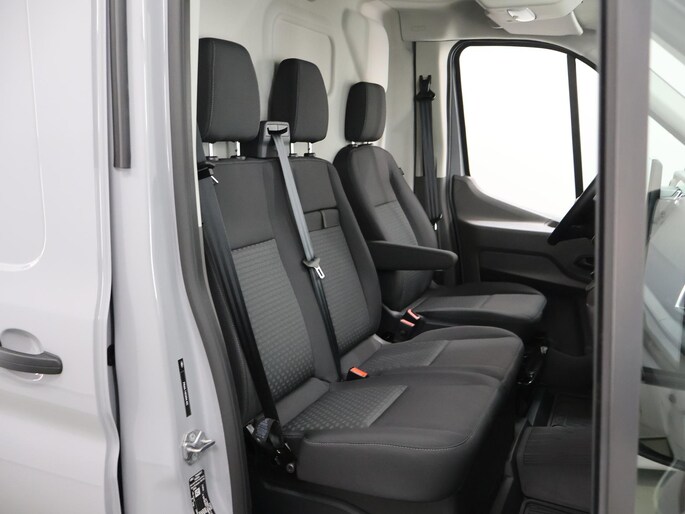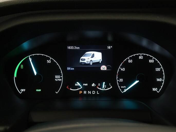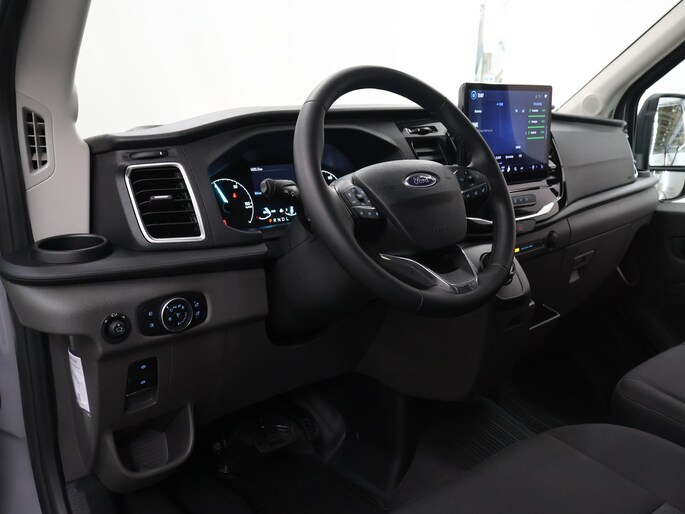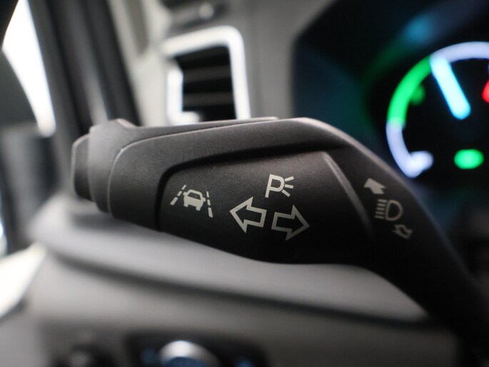 De Ford E-Transit is ook voorzien van ADAS. Deze Advanced Driver Assistence Systems fungeren als extra ogen en oren: ze houden voor u de weg in de gaten en grijpen in wanneer dat nodig is. Wat deze auto ook kan, is lezen. Hij 'leest' voor u de verkeersborden tijdens de rit en attendeert u erop door ze op het dashboard te projecteren. Deze Ford E-Transit is ook behulpzaam als het gaat om een rechte koers. Het Lane-keeping systeem signaleert en corrigeert als u onbedoeld de rijstrooklijnen dreigt te overschrijden. De actieve dodehoekdetectie helpt ongelukken te voorkomen. De auto is ook uitgerust met forward collision warning system en frontale botsbescherming.