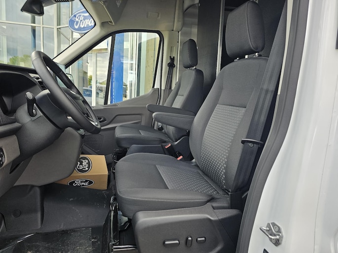 De nieuwste veiligheidssystemen komen in deze Ford E-Transit samen. Onderweg zorgt verkeersborddetectie ervoor dat u geen waarschuwingsbord mist. Indien u onbedoeld de rijstrook lijkt te verlaten, reageert het Lane-keeping systeem meteen en corrigeert. Bij afslaan en inhalen waarschuwt de actieve dodehoekdetectie meteen als er gevaar is vanwege voertuigen buiten uw zichtveld. Dankzij veiligheidsvoorzieningen als forward collision warning system en frontale botsbescherming, bent u steeds veilig onderweg.