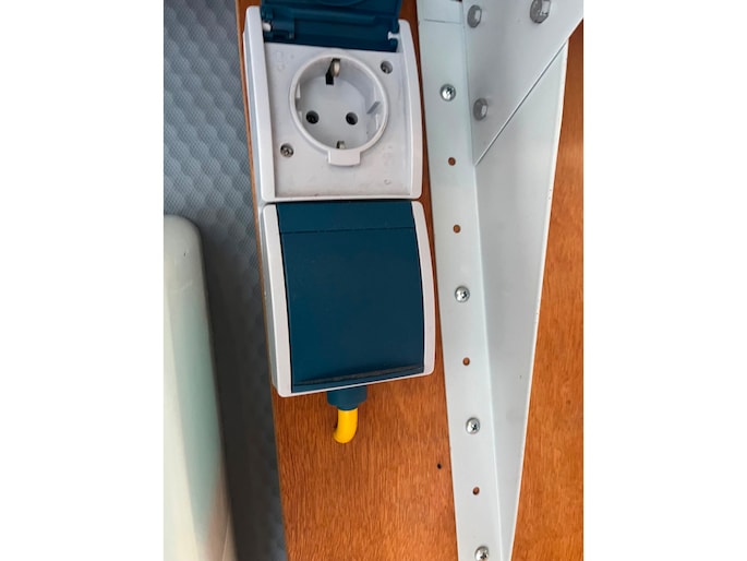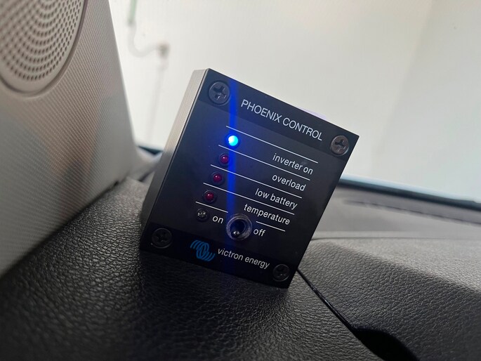 - Stroom op locatie verschillende v230 stopcontacten en 12v aansluitingen doormiddel van een Victron omvormer 12volt voor 230v / 220v met accu. Deze wordt geladen als de bus rijd.