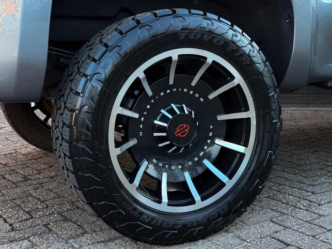 - Tonneau Cover & Tailgate: Een afsluitbare "hard tonneau cover" met het Harley-Davidson logo, in kleur gespoten fender flares (spatbordverbreders) en specifieke Harley-Davidson achterklepbekleding.