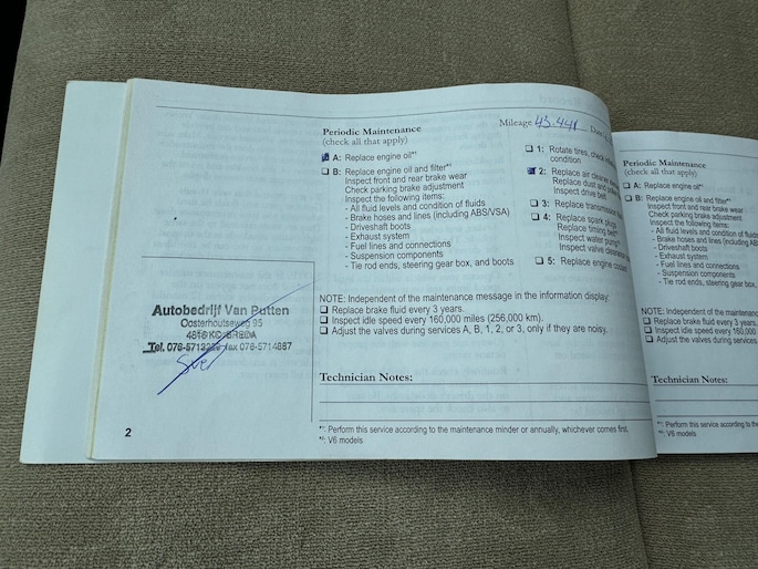 Onderhoudsboekjes: Aanwezig