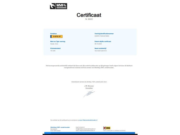 Kilometerstand gecontroleerd