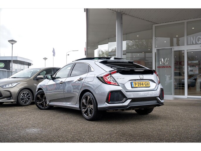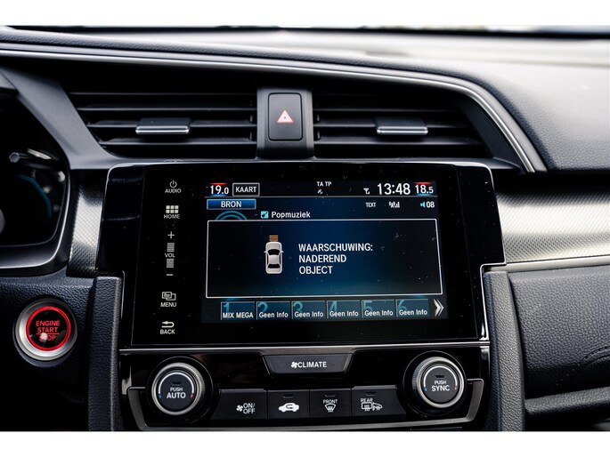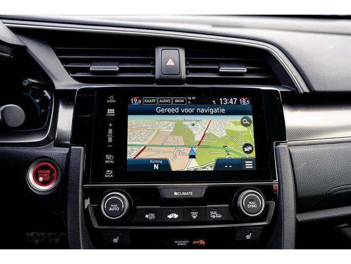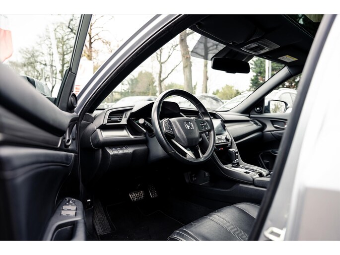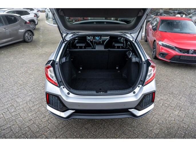 In de Honda Civic heeft uw veiligheid en die van uw omgeving prioriteit. Bij de veiligheidssystemen van deze Honda hoort ook de verkeersbord-detectie. Die leest tijdens het rijden als het ware met u mee en attendeert u op de significante verkeersborden langs en boven de weg. Het forward collision warning-systeem is constant alert en detecteert via sensor de afstand tot voorliggers. Wordt die te klein, dan volgt een automatische waarschuwing. Met lane assist rijdt u altijd binnen de lijnen van uw rijstrook. Het systeem waarschuwt als u onbedoeld over de wegmarkering rijdt. Dankzij veiligheidsvoorzieningen als elektronische handrem met hill hold functie, rem-assistent en bandenspanningcontrolesysteem, bent u steeds veilig onderweg.