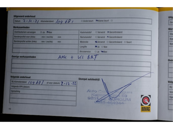 Onderhoudsboekjes: Aanwezig