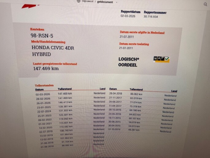 Kilometerstand gecontroleerd