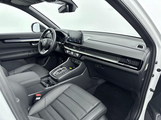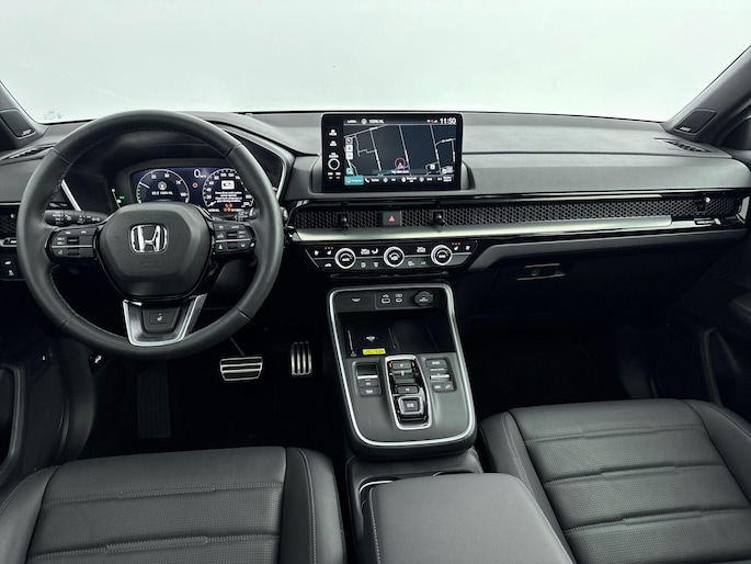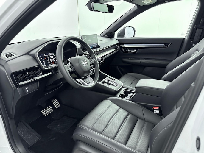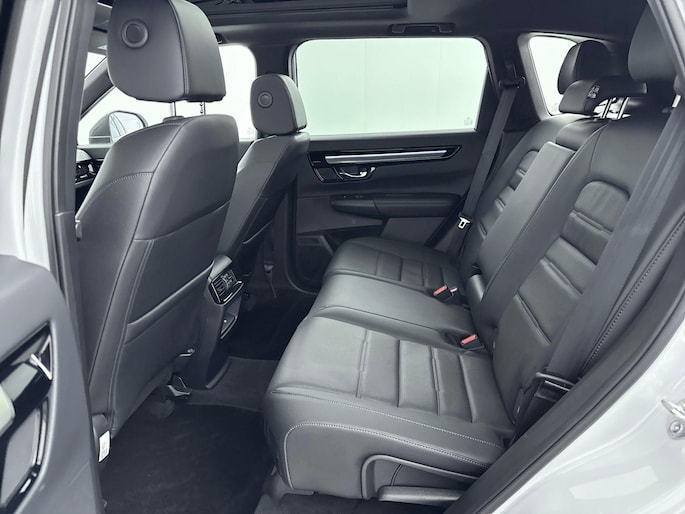 Het gecombineerde vermogen van een elektromotor plus een verbrandingsmotor geeft deze hybride Honda zijn geweldige rijkwaliteiten. Als we het over extra cachet hebben, moeten we zeker het lederen interieur noemen. Dankzij de elektrische stoelbediening is het gemakkelijk om de optimale zitpositie te vinden. Ongeacht hoe koud het buiten is, het verwarmbare stuurwiel samen met de verwarmbare voorstoelen en achterbank, zorgt ervoor dat iedereen in de auto zich snel opwarmt. Met een druk op de knop gaat de elektrische achterklep open. Wat een heerlijk ruim gevoel en zoveel licht geeft dat glazen panoramadak! Ook 18 inch lichtmetalen velgen, LED-koplampen, adaptief dempingsysteem, trailer assistent, dakspoiler en extra getint glas horen tot de voorzieningen op deze auto.