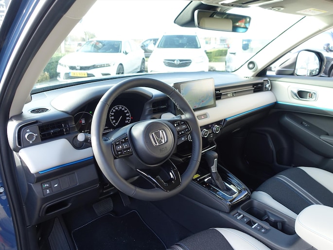 Uw nieuwe auto staat klaar voor vertrek. Stap gerust in, deze HONDA HR-V heeft 100 kilometer gelopen. Minder vaak tanken? Dat gaat lukken, dankzij de hybride motor die zowel op brandstof als elektriciteit werkt. Een mooie combi, die merkbaar is in de portemonnee. Behaaglijk onderweg zijn? Als bestuurder geniet u van de verwarmbare voorstoelen. Net als uw bijrijder! Als de 'r' in de maand zit, komt zo'n verwarmd stuurwiel als geroepen! Tot de uitrusting behoren ook LED koplampen, donker getint glas achter en elektrische stuurbekrachtiging.