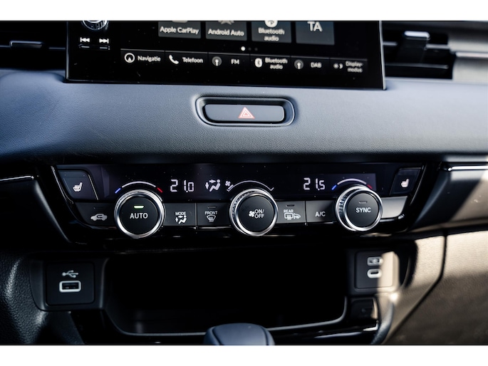 Een handige optie is de parkeerhulp met achteruitrijcamera. Achteruitrijden, inparkeren en manoeuvreren gaat gemakkelijker dan ooit. Adaptive cruise control is een comfortabele en veilige optie. Het systeem reguleert de snelheid en houdt automatisch afstand tot uw voorligger. In deze auto wordt u elke rit opnieuw bijgestaan door een gebruiksvriendelijk navigatiesysteem, terwijl u luistert naar het glasheldere geluid van het audiosysteem met DAB-radio. Dankzij automatische airconditioning is het interieur behaaglijk warm of verfrissend koel. De auto neemt u werk uit handen doordat hij zelf veel in de gaten houdt. Een regensensor en een automatisch inschakelbare verlichting nemen waar wanneer de ruitenwissers en het licht aan moeten. U bent in deze HONDA ook voorzien van keyless entry, automatisch dimmende spiegels, isofix-aansluiting, centrale deurvergrendeling met afstandsbediening en bagage afdekhoes.