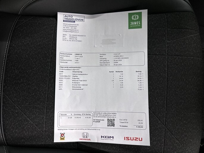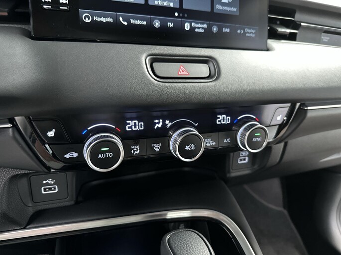 De achteruitrijcamera laat duidelijk zien hoeveel ruimte u nog heeft bij het inparkeren. Adaptive cruise control is veilig en comfortabel. De snelheidsregelaar houdt automatisch afstand tot het voertuig dat voor u rijdt. Kop aan kont langzaam rijden: dan is afstand houden soms lastig. De file assistent helpt en zorgt automatisch voor veilige ruimte tot de voorligger. Ook als die tot stilstand komt. Hoe is het met de banden, de accu en andere onderdelen? Connected Services maakt het inzichtelijk, 24/7 via de app. Het full map navigatiesysteem brengt u soepel en vlot naar uw bestemming. Met achteropkomend verkeer waarschuwing, electronic climate control, DAB ontvangst, regensensor, keyless entry en automatisch dimmende binnenspiegel is deze Honda helemaal compleet.