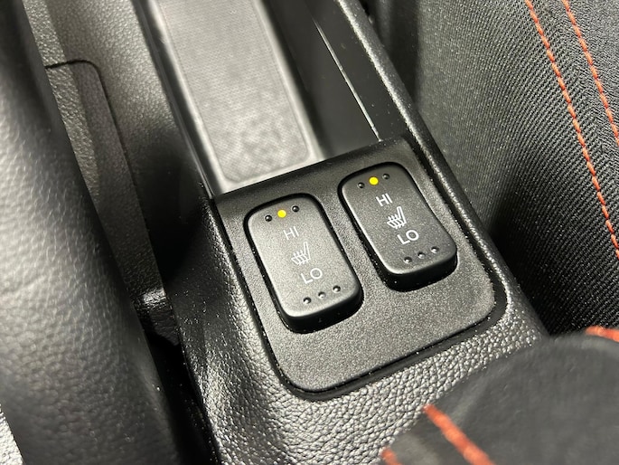 - Lederen knop versnellingspook met afwerking in oranje stiksel