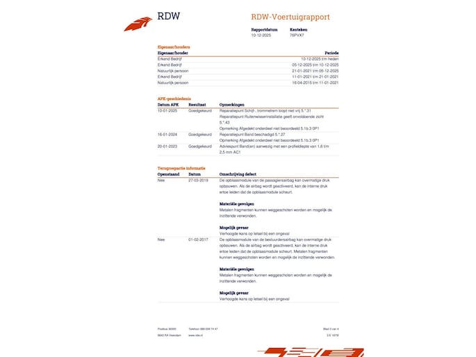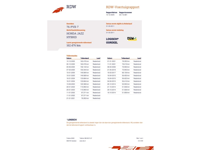 Kilometerstand gecontroleerd