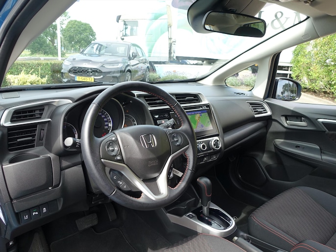Klein zouden we 'm niet willen noemen, deze Honda Jazz. Compact zeker wel. De totale ruimte is optimaal benut voor comfort en rijplezier. Deze Honda is voorzien van een pittige benzinemotor en een continue automatische transmissie. Tot de uitrusting van deze Honda behoren ook 16 inch lichtmetalen velgen, LED-dagrijverlichting, donker getint glas achter, verstelbare achterbank en elektrische stuurbekrachtiging.