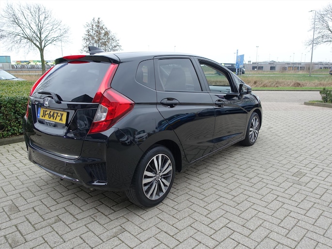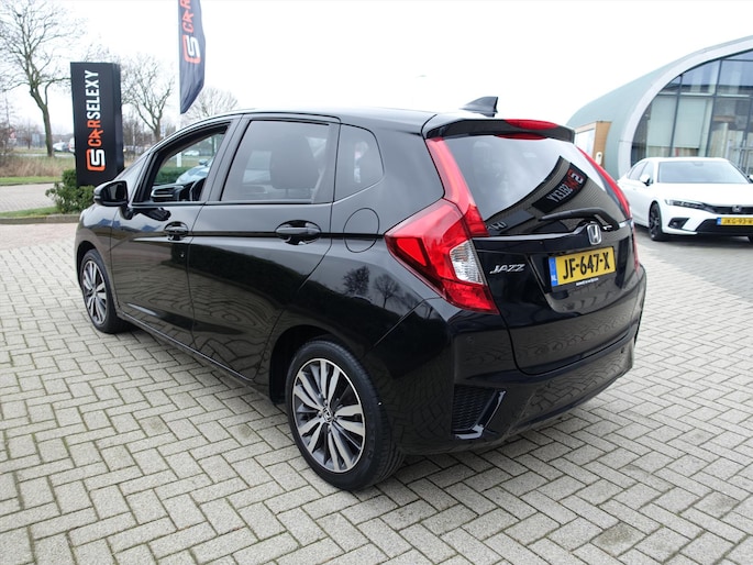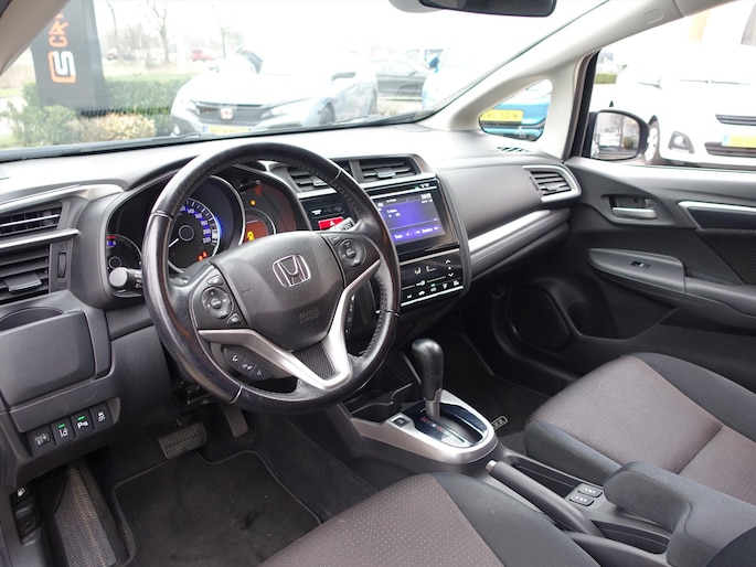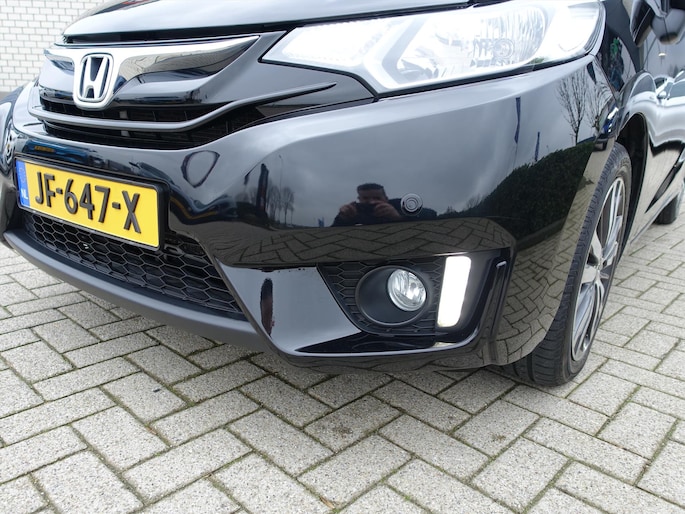 Afstand schatten bij het achteruitrijden? Niet nodig. U weet het precies, dankzij de achteruitrijcamera. Zuinig, veilig en ontspannen op pad: dat kan dankzij het aanwezige in dashboard opgenomen navigatiesysteem. Bij de luxe van deze auto hoort ook automatische airconditioning. Deze HONDA Jazz is voorzien van een regensensor, zodat de ruitenwissers altijd de juiste snelheid hebben. Stel de cruise control in op de gewenste snelheid en u rijdt comfortabel en zuinig. En dan is deze auto ook nog eens voorzien van schakel flippers aan het stuur, keyless entry, isofix-aansluiting, 2x usb aansluiting, centrale deurvergrendeling met afstandsbediening en bagage afdekhoes.