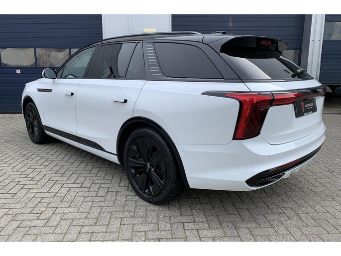 Autorijden zonder plaatselijke uitlaatemissies. Hongqi maakt deze belofte waar met deze E-HS9. Natuurlijk is de actieradius mede afhankelijk van de weersomstandigheden, maar een volle acculading is over het algemeen voldoende voor de gewone dagelijkse ritten. Het opladen kan gewoon 's nachts, terwijl je slaapt. Een fraai lederen interieur, dat in daglicht baadt dankzij het elektrisch bediende glazen panorama dak. En voor 'handsfree' in- en uitladen vind je aan de achterzijde de elektrisch bedienbare achterklep. Een weldaad voor uw rug en die van uw bijrijder: deze Hongqi E-HS9 heeft verwarmbare voorstoelen met massagefunctie. Je past de stoelen moeiteloos aan, ze zijn elektrisch in te stellen en hebben bovendien een geheugen. Ongeacht het aantal inzittenden blijft de hoogte van deze Hongqi E-HS9 altijd constant, dankzij de luchtvering. Pak aan, 't is winter! Zo'n verwarmd stuurwiel is dan bijzonder prettig! De koplampen met matrix LED-verlichting zijn het hoogst haalbare op het gebied van autoverlichting. Bij de uitrusting van deze Hongqi horen onder meer 21 inch lichtmetalen velgen, warmtewerend glas, neerklapbare achterbank, LED-achterlichten, elektrisch verstelde en verwarmde buitenspiegels en elektrisch bediende ramen.