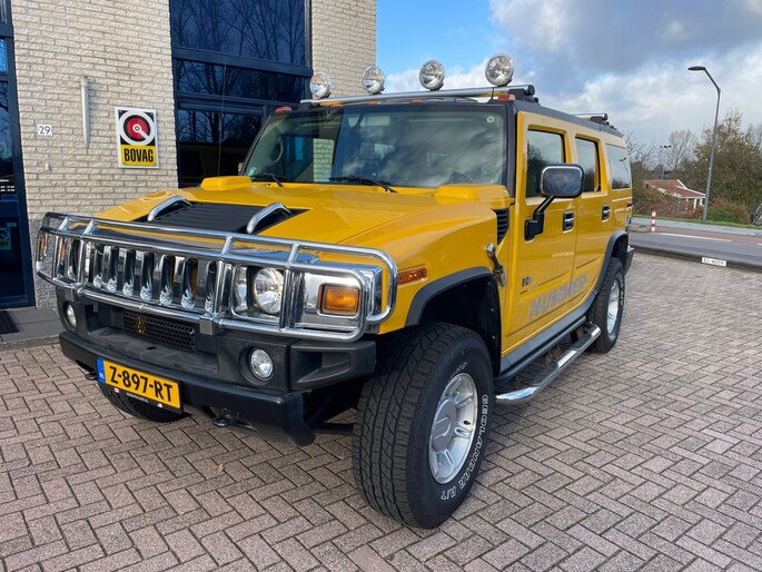 Hierbij bieden wij aan deze unieke Hummer H2 6.0 V8 in een zeer opvallende kleur. Deze Hummer H2 is uitgevoerd met de krachtige 6.0 benzine en LPG motor met een vermogen van 322 PK. De gastank en alle banden zijn onlangs vernieuwd daardoor hummer is helemaal klaar gemaakt voor gebruik. Een aantal opties van deze auto zijn: 4x4, reservewiel, elektrische stoelen, schuifdak, automaat, stoelverwarming, elektrische ramen, Bose audio, Climate controle, donkerglas en nog veel meer! Het is een genot om in deze auto te rijden, u bent uitgenodigd om dit zelf te komen ervaren. Bewezen betrouwbare auto's. Geheel nagekeken en klaar voor nog vele kilometers.