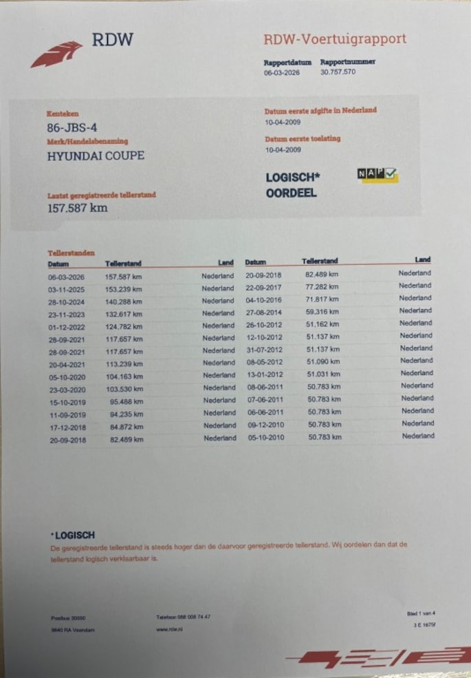 Kilometerstand gecontroleerd