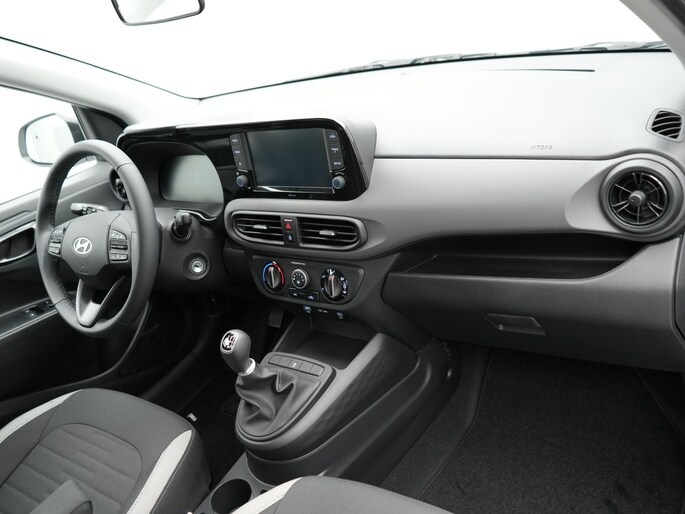 De Hyundai i10, zoals dit exemplaar, valt op door de combinatie van zijn ingetogen design, zijn ruime interieur en zijn uitstekende rijeigenschappen. De auto is van het bouwjaar 2024 en is van de eerste eigenaar. De motor in deze Hyundai maakt een vlotte rijstijl mogelijk en is toch zuinig met brandstof. Bij de uitrusting van deze auto horen onder meer LED koplampen en in delen neerklapbare achterbank.