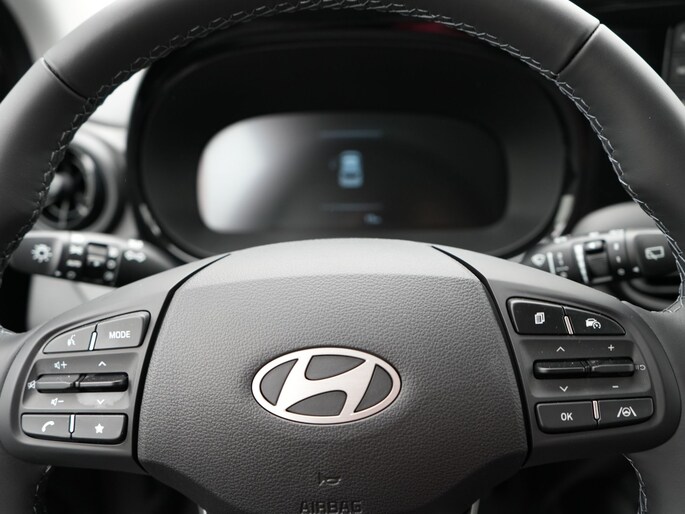 In één oogopslag weet je de complete systeemstatus van deze auto. Dankzij Connected Services. Gemakkelijk en veilig is de spraakbediening voor het audiosysteem. Daarbij kun je het ook bedienen met de knoppen op het stuur. De audio-kwaliteit is geweldig, dankzij de DAB-ontvangst. Met cruise control rij je rustiger en meer ontspannen, en bovendien zuiniger. Ja, ook airconditioning is in deze auto aanwezig. De Hyundai is standaard voorzien van: centrale deurvergrendeling met afstandsbediening, boordcomputer en verstelbaar stuur.