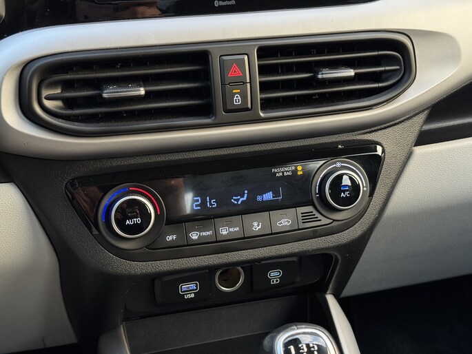 Twijfelen hoeveel ruimte je achter de auto hebt? Met de achteruitrijcamera weet je altijd hoeveel centimeter! Communiceren met je auto? Dat gaat via remote services. Met je smartphone maak je waar dan ook contact om allerlei functies te checken of te activeren. Een optie die de veiligheid verhoogt, is de bediening vanaf het stuur van het audiosysteem (met DAB-radio!) en het navigatiesysteem. Als je wilt kun jij beiden zelfs met je stem bedienen. Even de smartphone erin klikken en de draadloze telefoonlader zorgt vanzelf voor nieuwe energie. Nooit meer te warm of te koud. De automatische airconditioning zorgt altijd voor de temperatuur die jij kiest. Ook is de Hyundai uitgerust met: cruise control, centrale deurvergrendeling met afstandsbediening, boordcomputer en verstelbaar stuur.