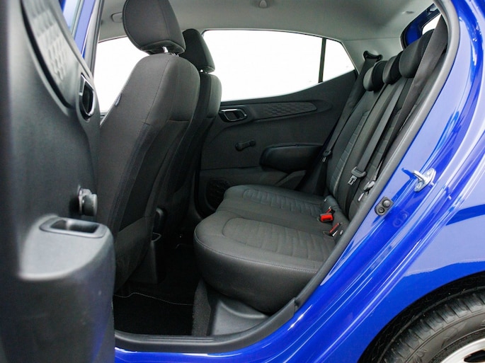 De Hyundai i10 biedt niet alleen praktische features, maar ook een moderne uitstraling met zijn metallic blauwe lak. Het tijdloze design en de vloeiende lijnen zorgen ervoor dat je in stijl de weg op gaat. Met vijf deuren is instappen en uitstappen geen enkele moeite, waardoor deze auto ideaal is voor zowel stadsritten als lange afstanden.