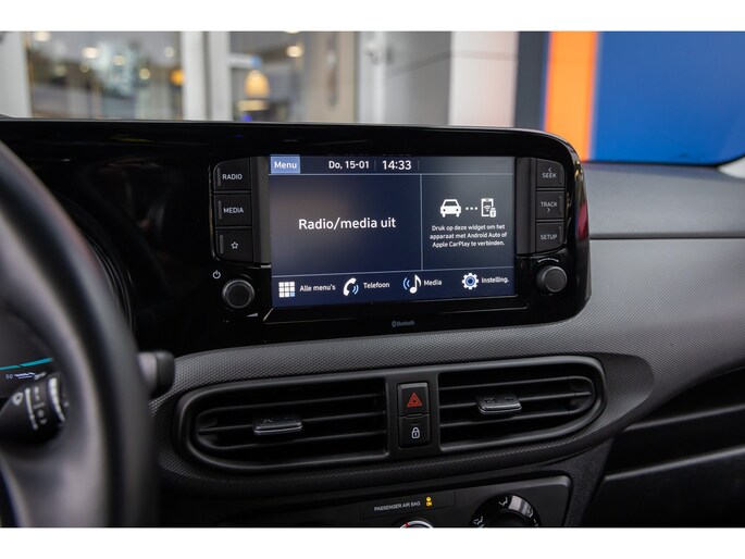 Hyundai onderscheidt zich door topklasse tegen een wel heel schappelijke prijs. Met als drijfveer: New Thinking. New Possibilities. De aandrijving komt voor rekening van een benzinemotor en een automatische transmissie. Bij de zeer complete uitrusting van deze auto behoren ook LED koplampen en in delen neerklapbare achterbank. Uw smartphone wordt een dashboard, met alle functies in beeld. Dankzij Connected Services en de speciale app. Het audiosysteem (met DAB-ontvangst!) bedient u met knoppen op het stuur of met stemcommando's. Er is ook cruise control aan boord, om met een constant tempo ontspannen en zuinig te rijden. Met de aanwezige airconditioning bepaalt u zelf het binnenklimaat. Natuurlijk behoren centrale deurvergrendeling met afstandsbediening, boordcomputer en verstelbaar stuur ook tot de uitrusting van deze complete auto. Geavanceerde systemen kunnen tijdens de rit bepaalde taken van u overnemen. Zo kijken er als het ware steeds extra ogen met u mee, zodat u tijdig kunt reageren op noodsituaties. Ongemerkt buiten de rijstrook raken? Nee hoor, het Lane-keeping systeem waarschuwt en corrigeert. Veel aanrijdingen bestaan uit kop-staartbotsingen. De forward collision warning reduceert dat risico aanzienlijk. De veiligheidssystemen in deze auto nemen het zelfs waar als de bestuurder tekenen van vermoeidheid vertoont, en waarschuwen dan met een duidelijk signaal. In deze Hyundai vinden we verder een hill hold functie, autonoom remsysteem en bandenspanningcontrolesysteem. Meer weten? Neem nu contact met ons op voor een afspraak.