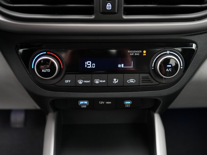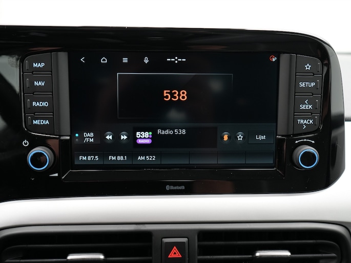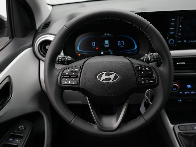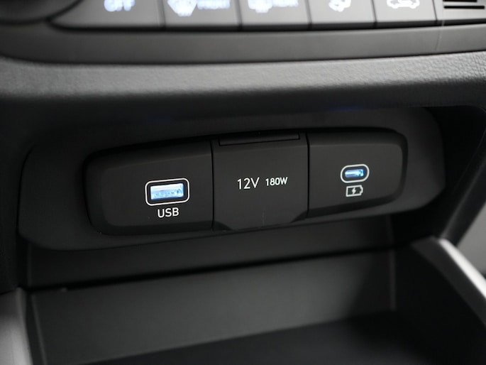 Geen nekkramp of spiegelwerk meer bij het achteruitrijden: de achteruitrijcamera kijkt en ziet alles! De speciale app verbindt met Connected Services, die de status van vitale functies bijhoudt en waarschuwt als je bijvoorbeeld moet tanken, de bandenspanning moet controleren of olie moet bijvullen. Onderweg kun jij veilig genieten van het audiosysteem met DAB-radio en het navigatiesysteem. Want in deze Hyundai bedien je ze vanaf het stuurwiel of met jouw stem. Geen gehannes met snoertjes en kabels, je laadt je smartphone automatisch op met de draadloze telefoonlader. De automatische airconditioning zorgt onder alle omstandigheden voor een prettige temperatuur. De Hyundai is standaard voorzien van: cruise control, centrale deurvergrendeling met afstandsbediening, boordcomputer en verstelbaar stuur.