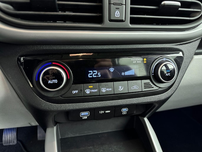 Deze Hyundai biedt je niet alleen comfort en rijplezier, maar ook veiligheid. Actieve veiligheidssystemen houden voor jou de weg in de gaten en reageren op onvoorziene situaties voordat jij dat kunt. Onderweg fungeert de verkeersbord-detectie als het ware als jouw bijrijder en attendeert je op de verkeersborden langs de weg. Met het Lane-keeping systeem kom je nooit per ongeluk buiten de rijstrook. Ook als jouw aandacht even verslapt, blijft de forward collision warning bij de wekker. Dreigt er een botsing met een voor- of tegenligger, dan waarschuwt het systeem direct. De auto is ook uitgerust met hill hold functie, vermoeidheidsherkenning, autonoom remsysteem en bandenspanningcontrolesysteem.