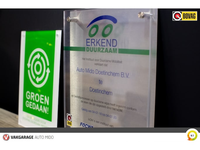 Dit afleverpakket bevat: BOVAG garantie (12 maanden); BOVAG 40-Puntencheck; BOVAG Afleverbeurt; Vakgarant Premium Occasion; Om uw toekomstige nieuwe auto zo goed mogelijk af te leveren, hanteren wij een vast tarief voor het optionele afleverpakket van € 895,-. Hierbij ontvangt u een onderhoudsbeurt volgens schema, een nieuwe APK, NAP certificaat (certificaat voor gegarandeerde kilometerstand), reconditionering, 25,- Euro brandstof en tenaamstelling. Bij de zekerheid van een gebruikte auto hoort een goede garantie. Onze occasions worden geleverd met minimaal 12 maanden BOVAG garantie, ongeacht het aantal kilometers dat u rijdt (i.c.m. afleverpakket). En om te onderstrepen dat we altijd voor u klaar staan, hebben wij voor u de speciale en persoonlijke Auto Mido Card. Hiermee profiteert u van diverse voordelen, waaronder volledige hulp bij pech onderweg in heel Europa. ; Nieuwe APK; 12 maanden BOVAG garantie, 12 maanden mobiliteitpas met Europa dekking, Airco onderhoud, APK keuring bij aflevering, Banden controle indien nodig vervangen, NAP kilometerpas, Nieuwe mattenset, Onderhoudsbeurt volgens fabrieksvoorschriften, Reconditionering, Remysteem controle indien nodig vervangen, € 25,- brandstof