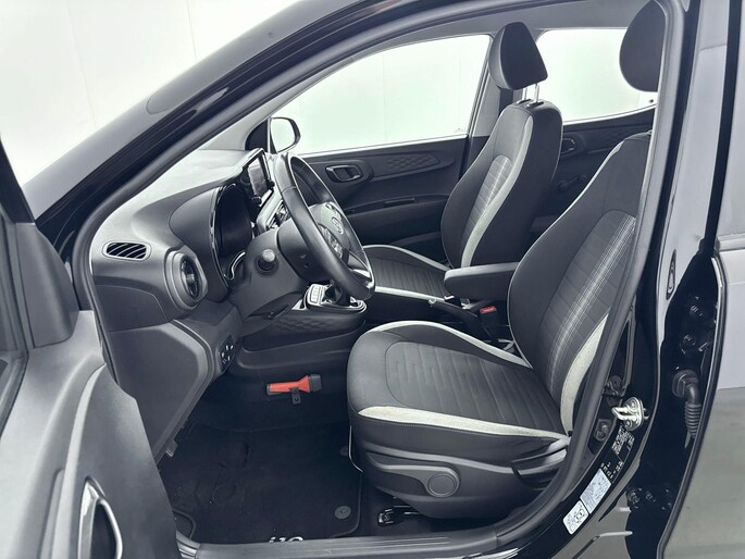 Deze Hyundai biedt u niet alleen comfort en rijplezier, maar ook veiligheid. Actieve veiligheidssystemen houden voor u de weg in de gaten en reageren op onvoorziene situaties voordat u dat kunt. Verkeersborddetectie herkent tijdelijke en permanente verkeersborden langs en boven de weg. Het Lane-keeping systeem let constant op en waarschuwt of corrigeert als u onoplettend over de lijnen van de rijstrook gaat. Deze Hyundai i10 blijft altijd alert. Zo wordt gebruik gemaakt van forward collision warning. Bij het mogelijke risico op een aanrijding met een voertuig voor u, slaat het systeem alarm. De auto is ook uitgerust met hill hold functie, vermoeidheidsherkenning, autonoom remsysteem en bandenspanningcontrolesysteem.
