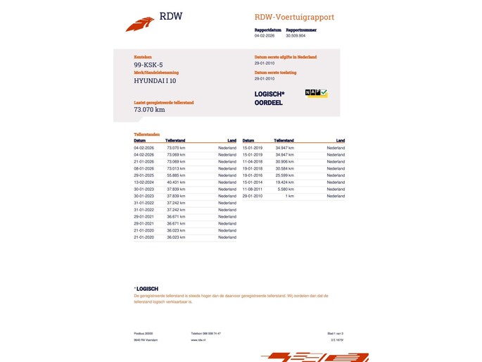 Wellicht vind je een andere aanbieder met een Hyundai i10 tegen een lagere prijs. Dan lijkt het aantrekkelijk om voor die auto te kiezen, maar een lagere prijs kan duiden op mindere kwaliteit. Denk aan meerdere eigenaars, een hogere kilometerstand, ontbrekende onderhoudsgeschiedenis of geen NAP-certificering. Ook kan het gaan om een import- of schadeverleden, minder extra’s of een aanbieder die geen service kan verlenen. Dit kunnen grote nadelen zijn.