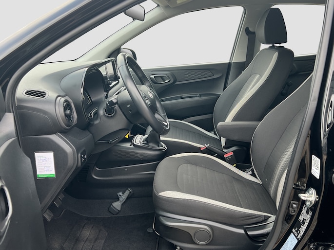 Intelligent en praktisch, de Hyundai i10 staat bekend om zijn handzaamheid en zijn kwaliteit. De aandrijving van deze auto komt voor rekening van een pittige benzinemotor, in combinatie met een handgeschakelde vijfversnellingsbak. Ook is de auto voorzien van: LED koplampen en in delen neerklapbare achterbank. Soepel inparkeren in de krapste parkeervakken. De achteruitrijcamera maakt het mogelijk. Spraaksturing luistert naar uw stem en bedient de belangrijkste voertuigfuncties. Pech oplossen en zelfs voorkomen? Gaat eenvoudig. Via Connected Services heeft u alle data in de hand, gewoon op de smartphone! De kortste weg, de zuinigste weg, de snelste weg... elke weg is te vinden met het navigatiesysteem. Met de DAB-ontvanger luistert u naar glasheldere digitale radio. U bent in deze Hyundai ook voorzien van cruise control, airconditioning, centrale deurvergrendeling met afstandsbediening, boordcomputer en verstelbaar stuur. Tijdens de rit wordt u als bestuurder ondersteund door verschillende systemen die de weg en uw omgeving in de gaten houden. Een belangrijke bijdrage aan de veiligheid onderweg levert de verkeersbord-detectie in deze Hyundai. Voorzien van het Lane-keeping systeem. Ofwel: blijf automatisch in je baan. Forward collision warning waarschuwt bij een dreigende aanrijding en vermindert de gevolgen van een ongeval. De auto is ook uitgerust met hill hold functie, vermoeidheidsherkenning, autonoom remsysteem en bandenspanningcontrolesysteem. Uiteraard is een proefrit altijd mogelijk. Bel onze verkoper voor een afspraak!