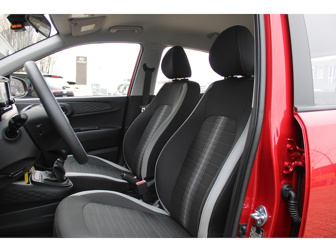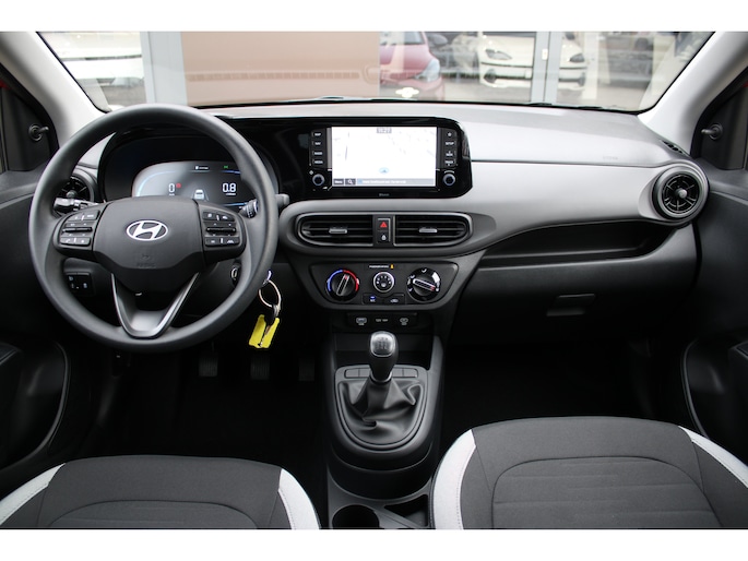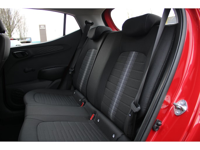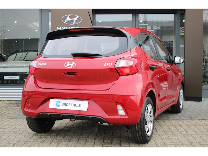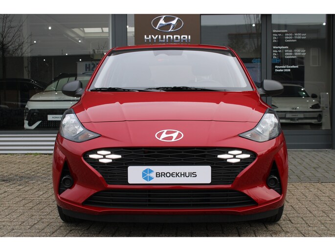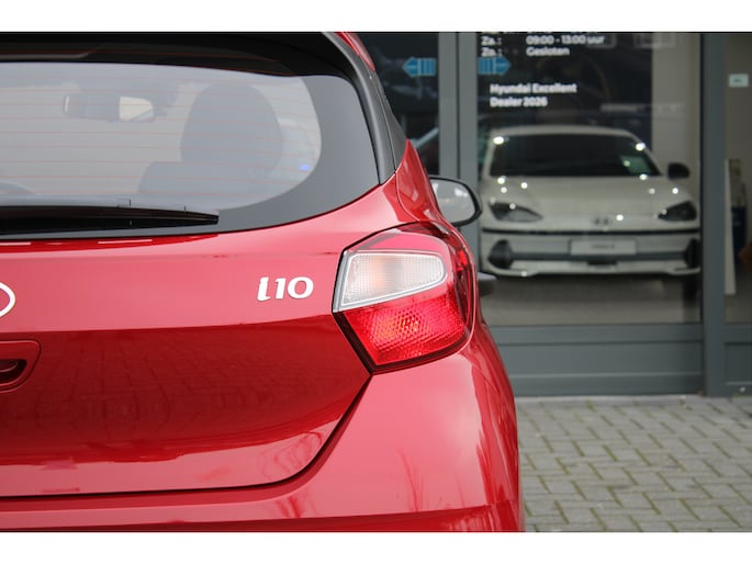 Het doordachte concept van de Hyundai i10 staat garant voor ruimte en rijcomfort. Het gaat hier om een nieuwe auto, die uit voorraad leverbaar is. Deze Hyundai is voorzien van een pittige benzinemotor en een handgeschakelde vijfversnellingsbak. Tot de uitrusting behoren ook LED-dagrijverlichting, dakspoiler en in delen neerklapbare achterbank. De hoogwaardige achteruitrijcamera en het display met hoge resolutie zorgen dat helemaal niets u meer ontgaat van wat er achter de auto gebeurt. Had u de auto nou wel afgesloten? Met Connected Services checkt u het overal en altijd. De bediening van het audiosysteem en het full map navigatiesysteem gebeurt met knoppen op het stuur en als u wilt zelfs met uw stem. Ook op de korte stukken is de cruise control een uitkomst. Kijk maar bij de benzinepomp! En natuurlijk is er ook gedacht aan airconditioning. Extra opties op deze auto zijn: centrale deurvergrendeling met afstandsbediening, boordcomputer en verstelbaar stuur. Zoals u mag verwachten van deze Hyundai i10 is hij uitgerust met een reeks aan actieve veiligheidssystemen. De actuele snelheidslimiet, een inhaalverbod en andere verkeersborden. De verkeersborddetectie ondersteunt u tijdens elke rit. Met het Lane-keeping systeem komt u nooit per ongeluk buiten de rijstrook. Onbedoeld bumperkleven is er niet bij, dankzij de forward collision warning. Die waarschuwt direct als een botsrisico met uw voorligger dreigt. In deze Hyundai vinden we verder een hill hold functie, autonoom remsysteem en bandenspanningcontrolesysteem. We kunnen ons voorstellen dat u deze auto wilt bekijken. We laten de auto graag aan u zien, dan vertellen we u meteen welke financieringsvormen we u eventueel kunnen bieden.
