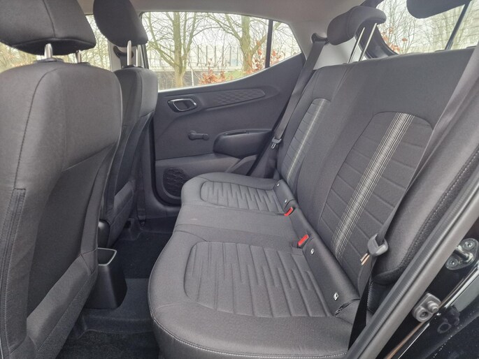 Inparkeren? Met de achteruitrijcamera heeft u er geen omkijken meer naar! Veilig en comfortabel rijden wordt nog eens versterkt door Connected Services, zodat u diverse vitale functies van de auto altijd kunt checken in de app. In deze i10 vindt u niet alleen schakelaars op het stuur om het navigatiesysteem te bedienen en het audiosysteem met DAB-ontvangst, maar er is ook spraakbediening. Automatische airconditioning regelt volautomatisch de temperatuur. U kiest de gewenste temperatuur en het systeem doet de rest. Kleine ritjes, grote reizen - altijd een relaxte aankomst dankzij de cruise control. Ook centrale deurvergrendeling met afstandsbediening, boordcomputer en verstelbaar stuur horen tot de voorzieningen op deze auto.