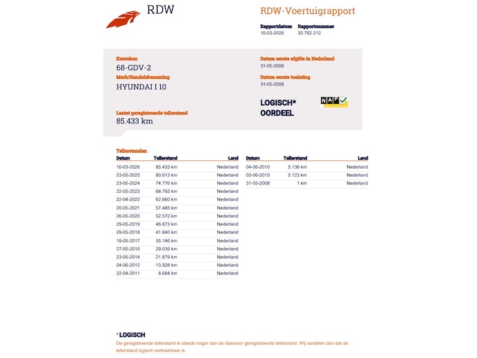 Kilometerstand gecontroleerd