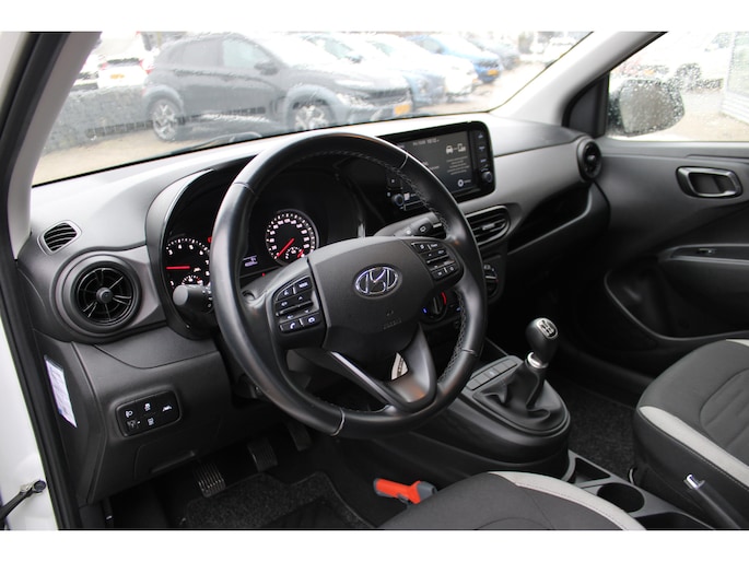 Waarom deze Hyundai i10 zo populair is? Dat is echt niet zo moeilijk. Want hij heeft heel wat fijne extra's verstopt in z'n handige formaat. En heerlijk laag in verbruik, wegenbelasting en verzekering. De motor maakt een vlotte rijstijl mogelijk en is toch zuinig met brandstof. Ook is de auto voorzien van: LED-dagrijverlichting en in delen neerklapbare achterbank. In één oogopslag weet u de complete systeemstatus van deze auto. Dankzij Connected Services. Gemakkelijk en veilig is de spraakbediening voor het audiosysteem. Daarbij kunt u het ook bedienen met de knoppen op het stuur. De audio-kwaliteit is geweldig, dankzij de DAB-ontvangst. Relaxt rijden is meegeleverd in de vorm van cruise control. In een auto als deze mag u ook airconditioning verwachten. Extra opties op deze auto zijn: lederen stuur, centrale deurvergrendeling met afstandsbediening, boordcomputer en lederen versnellingspook. De nieuwste veiligheidssystemen komen in deze Hyundai i10 samen. Een camera houdt de juiste koers binnen de rijstrook in de gaten en het Lane-keeping systeem corrigeert bij afwijkingen. Mindert een voorligger onverwachts te veel vaart, dan komt de forward collision warning in actie en waarschuwt meteen. Het laatste wat u wilt is dat u achter het stuur indommelt. Om dat te voorkomen is deze auto uitgerust met vermoeidheidsherkenning. Ook helpen het hill hold functie, autonoom remsysteem en bandenspanningcontrolesysteem, uw rit tot een veilige rit te maken. Uiteraard is een proefrit altijd mogelijk. Bel onze verkoper voor een afspraak!