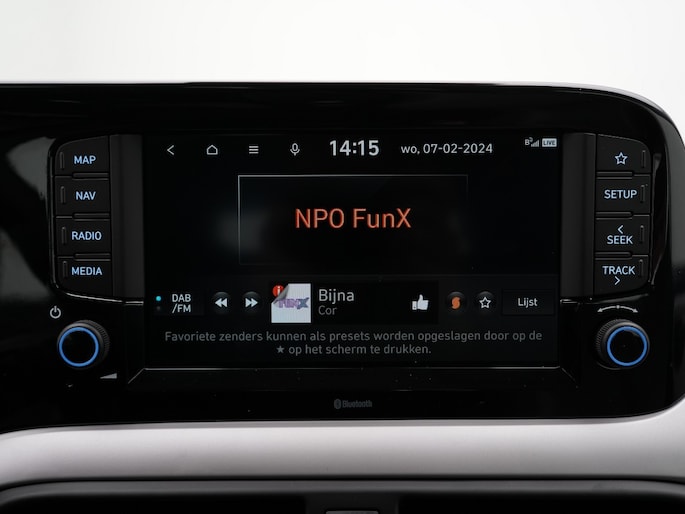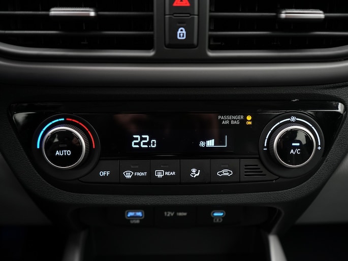 Kinderfietsje niet gezien bij het inparkeren? Dat gebeurt je nooit meer. Daar zorgt de achteruitrijcamera wel voor! Dankzij Connected Services houd je de auto nog gemakkelijker in topconditie. Elke dag. Het infotainmentaanbod is zeer uitgebreid. Ontspannen reizen doe je met behulp van het navigatiesysteem terwijl je muziek afspeelt via het audiosysteem met DAB-radio. Kabels niet nodig, de draadloze telefoonlader laadt je smartphone al rijdend bij. Of het buiten nu warm is of koud, dankzij automatische airconditioning is het binnen altijd behaaglijk. Met dashboard met spraakbediening, cruise control, centrale deurvergrendeling met afstandsbediening, boordcomputer en verstelbaar stuur is deze Hyundai helemaal compleet.