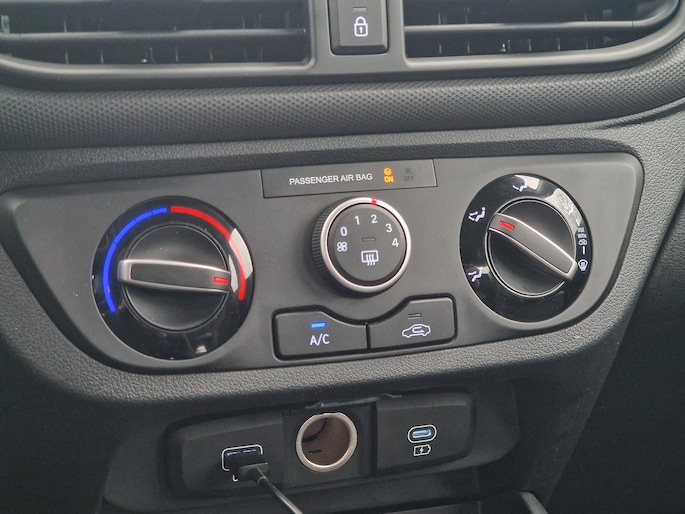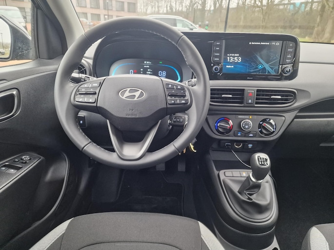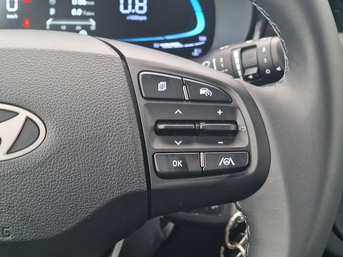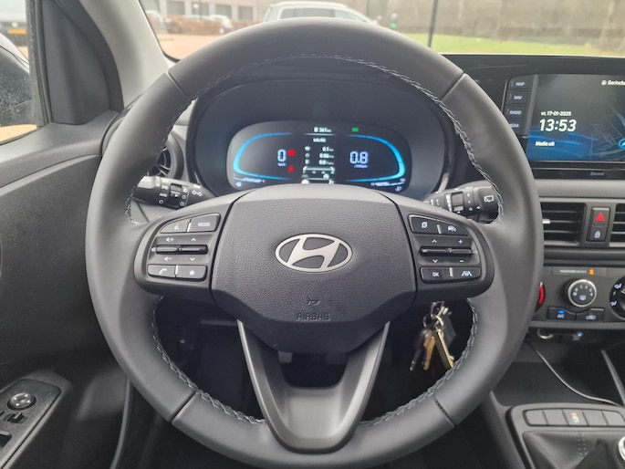 Inparkeren? Met de achteruitrijcamera heeft u er geen omkijken meer naar! Veilig en comfortabel rijden wordt nog eens versterkt door Connected Services, zodat u diverse vitale functies van de auto altijd kunt checken in de app. In deze i10 vindt u niet alleen schakelaars op het stuur om het navigatiesysteem te bedienen en het audiosysteem met DAB-ontvangst, maar er is ook spraakbediening. Automatische airconditioning regelt volautomatisch de temperatuur. U kiest de gewenste temperatuur en het systeem doet de rest. Kleine ritjes, grote reizen - altijd een relaxte aankomst dankzij de cruise control. Ook centrale deurvergrendeling met afstandsbediening, boordcomputer en verstelbaar stuur horen tot de voorzieningen op deze auto.