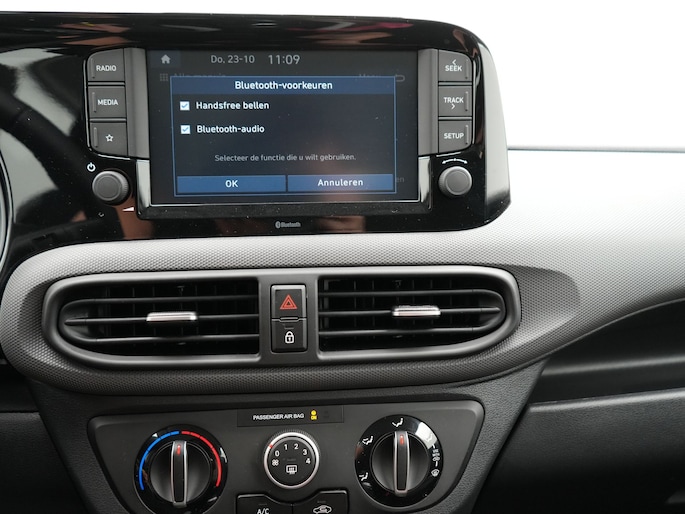 In één oogopslag weet je de complete systeemstatus van deze auto. Dankzij Connected Services. Gemakkelijk en veilig is de spraakbediening voor het audiosysteem. Daarbij kun je het ook bedienen met de knoppen op het stuur. De audio-kwaliteit is geweldig, dankzij de DAB-ontvangst. Met cruise control rij je rustiger en meer ontspannen, en bovendien zuiniger. Ja, ook airconditioning is in deze auto aanwezig. De Hyundai is standaard voorzien van: centrale deurvergrendeling met afstandsbediening, boordcomputer en verstelbaar stuur.