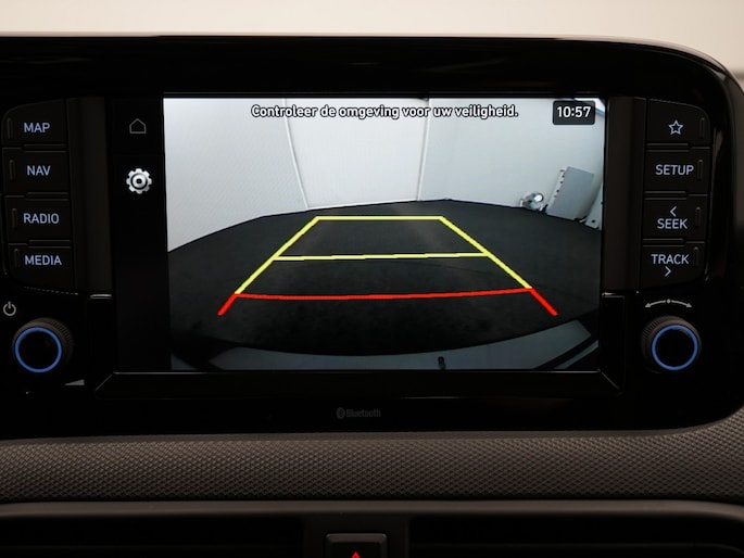 De nieuwste veiligheidssystemen komen in deze Hyundai i10 samen. Het Lane-keeping systeem registreert permanent of je binnen de lijnen van de rijstrook blijft; dwaal je onbedoeld af, dan waarschuwt het systeem en corrigeert de koers. Forward collision warning waarschuwt bij een dreigende aanrijding en vermindert de gevolgen van een ongeval. Bovenop deze veiligheidsfeatures heeft deze Hyundai bovendien hill hold functie, autonoom remsysteem en bandenspanningcontrolesysteem.