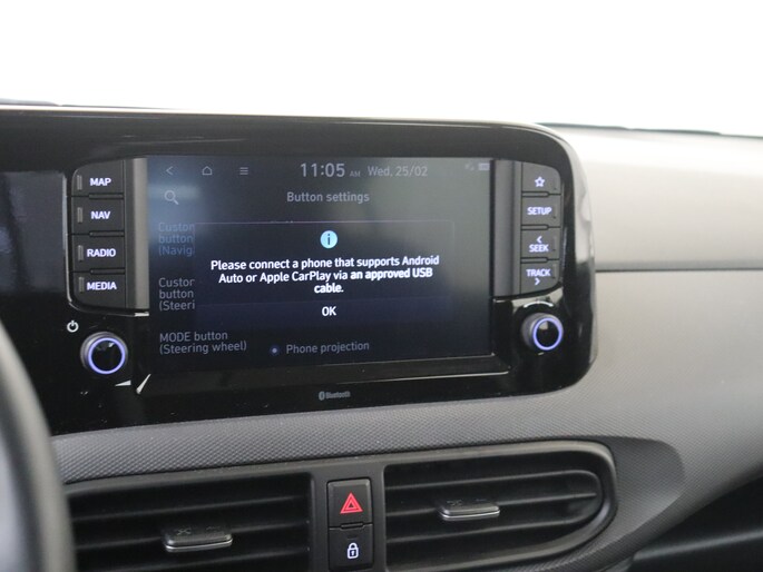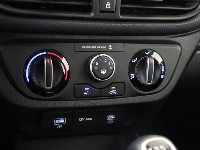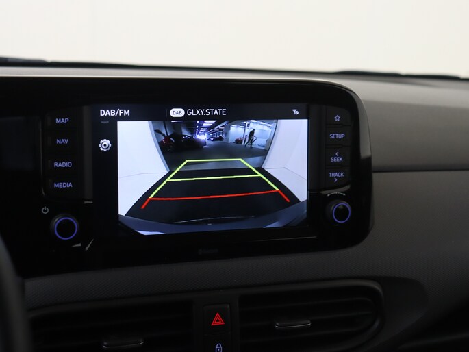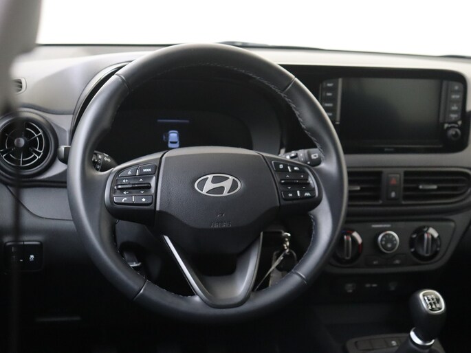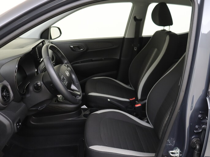 Zoals je mag verwachten van deze Hyundai i10 is hij uitgerust met een reeks aan actieve veiligheidssystemen. Wat deze auto ook kan, is lezen. Hij 'leest' voor jou de verkeersborden tijdens de rit en attendeert je erop door ze op het dashboard te projecteren. Het Lane-keeping systeem registreert permanent of je binnen de lijnen van de rijstrook blijft; dwaal je onbedoeld af, dan waarschuwt het systeem en corrigeert de koers. Onbedoeld bumperkleven is er niet bij, dankzij de forward collision warning. Die waarschuwt direct als een botsrisico met je voorligger dreigt. Ook helpen het hill hold functie, vermoeidheidsherkenning, autonoom remsysteem en bandenspanningcontrolesysteem, jouw rit tot een veilige rit te maken.