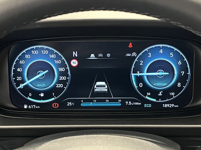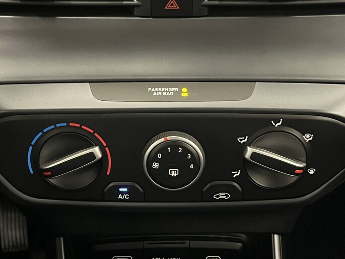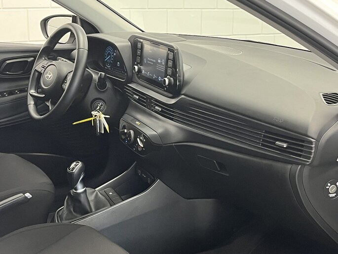 De indeling van het digitale dashboard is zo ingericht dat je met één blik precies weet wat je weten wilt. Kommaar-kommaar-kommaar, aldus de achteruitrijcamera. Iedere centimeter vrije ruimte komt haarscherp in beeld. Schadevrij inparkeren maar! Wat is de onderhoudsstatus van deze auto? Je checkt het snel, simpel en overal via je smartphone. In deze i20 vind jij niet alleen schakelaars op het stuur om het audio-installatiesysteem met DAB-ontvangst te bedienen, maar er is ook spraakbediening. De cruise control zorgt voor zorgeloos, ontspannen en zuinig rijgedrag. Ook is de Hyundai uitgerust met: keyless entry, airconditioning, automatisch dimmende binnenspiegel, centrale deurvergrendeling met afstandsbediening, bagage afdekhoes en verstelbaar stuur.