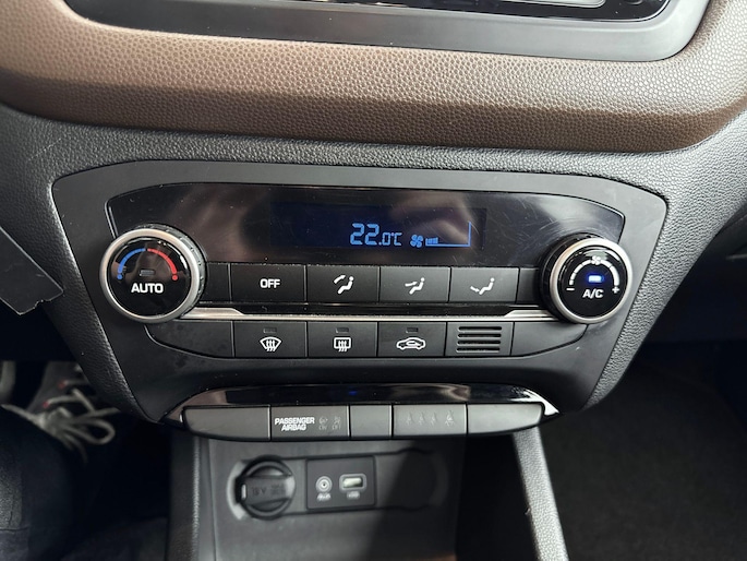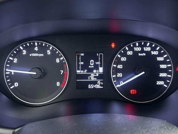 Kinderfietsje niet gezien bij het inparkeren? Dat gebeurt u nooit meer. Daar zorgt de achteruitrijcamera wel voor! De bediening van het audiosysteem en het full map navigatiesysteem gebeurt met knoppen op het stuur. De audio is overigens voorzien van DAB-radio voor een altijd heldere ontvangst. Onbedoeld snijden na het inhalen gebeurt niet meer, dankzij de achteropkomend verkeer waarschuwing. De auto is ook uitgevoerd met automatische airconditioning. De elektronische systemen in deze Hyundai helpen u actief om comfortabeler te rijden. Een automatisch inschakelbare verlichting en een regensensor houden de omstandigheden onderweg in de gaten. De Hyundai is standaard voorzien van: cruise control, automatisch dimmende binnenspiegel, lederen stuur en versnellingspook, centrale deurvergrendeling met afstandsbediening en boordcomputer.