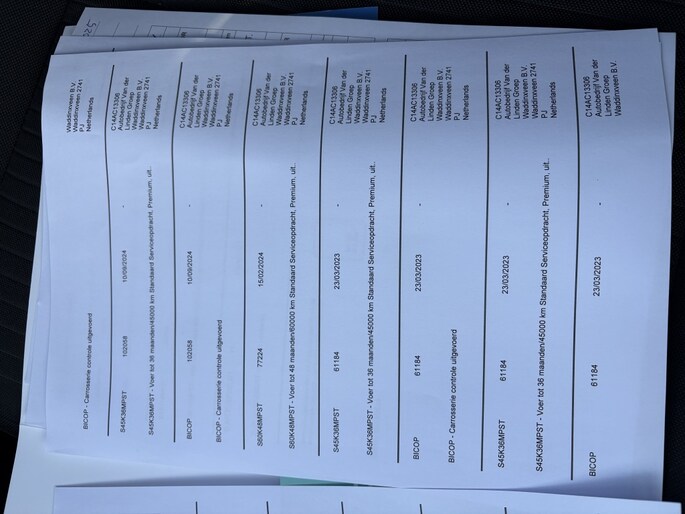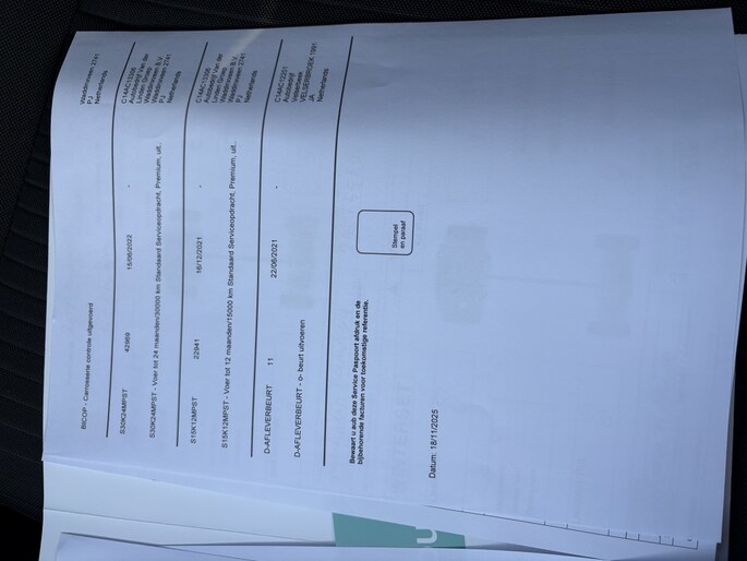 Dit afleverpakket bevat: BOVAG garantie (12 maanden); Autotrust garantie; Onderhoudsbeurt, 12 maanden Multipart garantie op personenwagens, 6 maanden op bedrijfswagens. APK voor tenminste 12 maanden, In- en exterieur gereinigd, minimaal 15 liter brandstof. Bij het Volledig Service Pakket wordt inspectie en onderhoud volgens fabrieksschema uitgevoerd en de auto te naam gesteld. De inruilauto wordt overgeschreven en de Nationale Auto Pas wordt bijgeleverd. De brandstoftank wordt met minimaal 15 liter gevuld en een nieuwe steunplaat achter het nummerbord geplaatst. De binnen- en buitenzijde van de auto wordt gereinigd en in de was gezet. De werking van de airco wordt gecontroleerd. De auto wordt geleverd met 12 maanden James Rijgarantie (pechhulp). Dit pakket kost eur 1095,- incl. BTW. ; Nieuwe APK