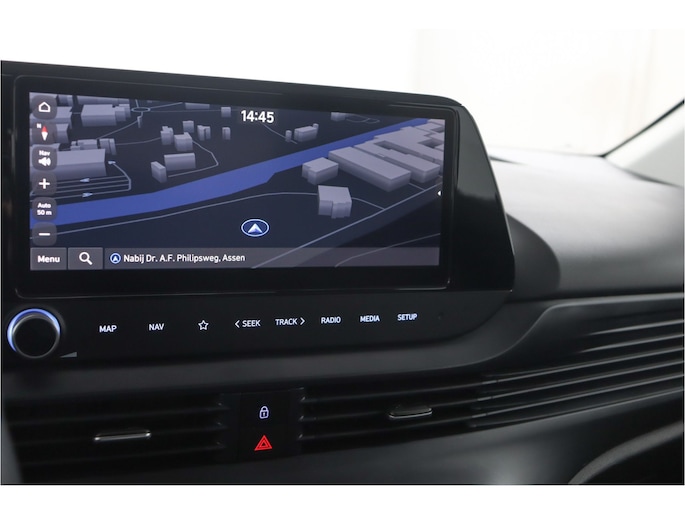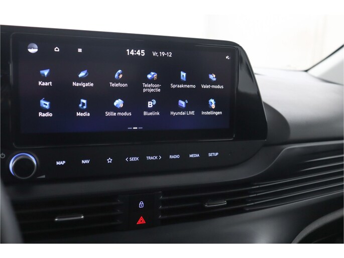 Het systeem controleert alle belangrijke functies en geeft die perfect weer via het digitale dashboard. Boem is ho? Dat is verleden tijd. De achteruitrijcamera laat precies zien hoeveel ruimte u achter nog heeft! Locatie, motorconditie, storingen... via Connected Services krijgt u alle vitale info over de auto door. Ook handig bij pech! Deze Hyundai is voorzien van spraakbediening voor het full map navigatiesysteem en voor het audio-installatiesysteem met DAB-ontvangst. Maar u kunt ook de knoppen op het stuur gebruiken. Met de cruise control kunt u zorgen dat u op die rechte stukken toch uit beeld blijft bij de flitsers. De uitrusting van deze auto is met keyless entry, airconditioning, automatisch dimmende binnenspiegel, centrale deurvergrendeling met afstandsbediening, bagage afdekhoes en verstelbaar stuur behoorlijk compleet.