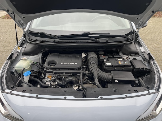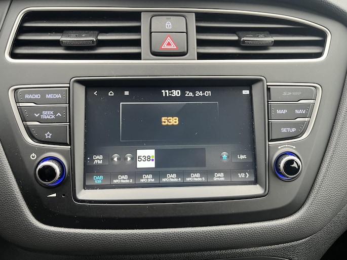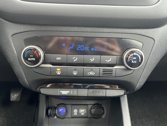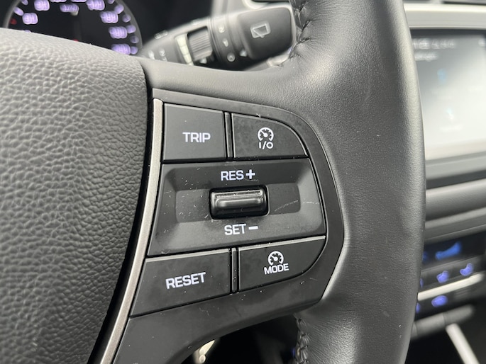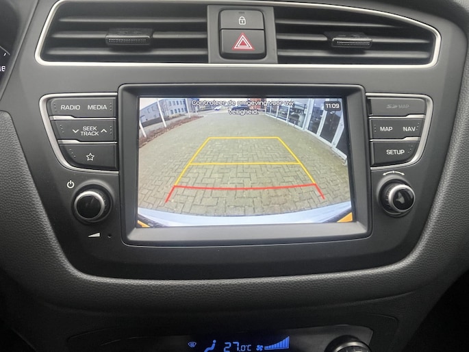 De achteruitrijcamera levert eersteklas parkeerservice. Je weet precies hoeveel ruimte je nog hebt, in beeld en geluid. Het infotainmentsysteem bedien je met je vingers of met je stem, met dank aan de geïntegreerde stembediening. Prettig, altijd weten waar je moet zijn en hoe lang de rit nog duurt met het navigatiesysteem. Radarsensoren aan de achterkant van de auto zorgen voor een achteropkomend verkeer waarschuwing als de afstand tot het verkeer achter te klein wordt. Het comfort wordt verhoogd door de aanwezige automatische airconditioning. Ook is de Hyundai uitgerust met: DAB ontvangst, regensensor, cruise control, automatisch dimmende binnenspiegel, lederen stuur en centrale deurvergrendeling met afstandsbediening.