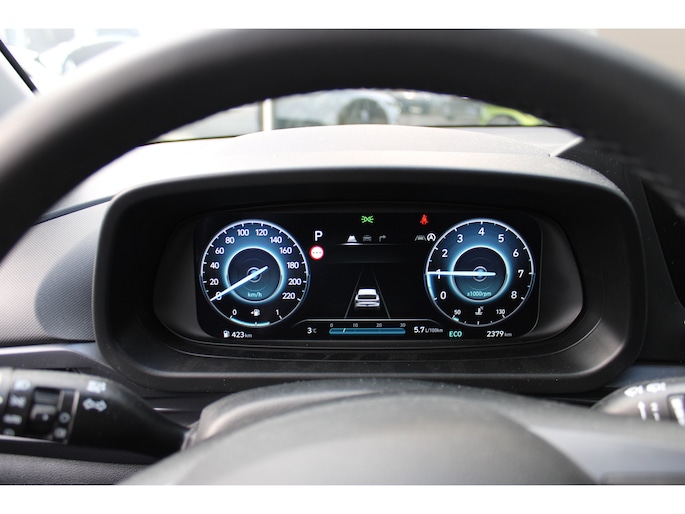 Het karaktervolle uiterlijk van de Hyundai i20 doet niets af aan het feit dat dit een comfortabele en bijzonder praktische auto is. Het is een auto uit 2026 die 5000 heeft gelopen. De motor is zuinig maar pittig, en maakt een vlotte rijstijl mogelijk. Bij de zeer complete uitrusting van deze auto behoren ook 16 inch lichtmetalen velgen, LED-dagrijverlichting en in delen neerklapbare achterbank. In één oogopslag zijn alle vitale functies afleesbaar dankzij het digitale dashboard. Kommaar-kommaar-kommaar, aldus de achteruitrijcamera. Iedere centimeter vrije ruimte komt haarscherp in beeld. Schadevrij inparkeren maar! Spraakbediening verhoogt de veiligheid en het gebruiksgemak. De auto luistert naar uw instructies en volgt ze op. Met Connected Services wordt iedere rit nóg veiliger. Voor een storingvrije radio-ontvangst zorgt de ingebouwde DAB-ontvanger. De Hyundai is standaard voorzien van: cruise control, airconditioning, automatisch dimmende binnenspiegel, lederen stuur en versnellingspook en centrale deurvergrendeling met afstandsbediening. Deze Hyundai is voorzien van verschillende intelligente veiligheidsvoorzieningen. Ze kijken tijdens het rijden als het ware met u mee, ze signaleren potentieel gevaarlijke situaties en in een aantal gevallen kunnen ze ook ingrijpen. Onbedoeld buiten de rijstrook raken wordt voorkomen door het Lane-keeping systeem. Forward collision warning waarschuwt voor een kop-staart botsing. Vermoeid achter het stuur zitten vergroot de kans op een ongeval. Vermoeidheidsherkenning waarschuwt tijdig als u aan een rustpauze toe bent. Dankzij veiligheidsvoorzieningen als dodehoekdetectie, autonoom remsysteem en bandenspanningcontrolesysteem, bent u steeds veilig onderweg. Een proefrit levert het bewijs. Neem contact op en we maken een afspraak!