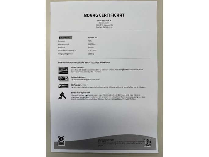 Dit afleverpakket bevat: BOVAG garantie (12 maanden)