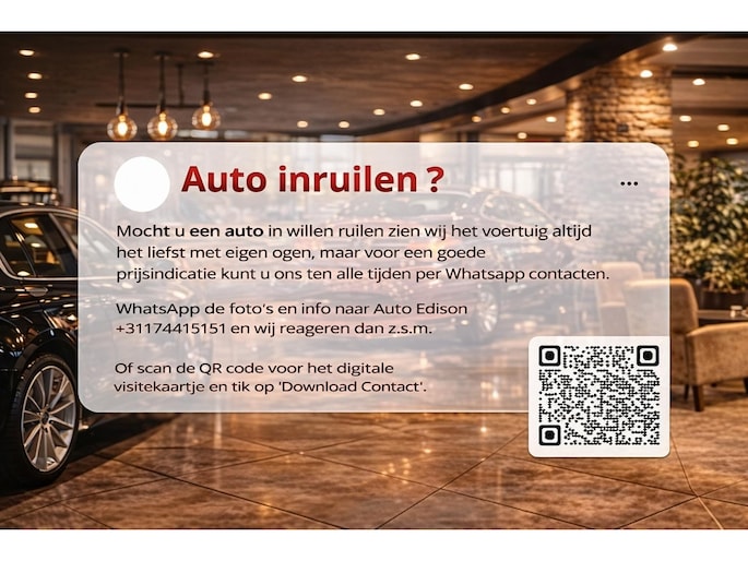 Mocht u een auto in willen ruilen zien wij het voertuig altijd het liefst met eigen ogen, maar voor een goede prijsindicatie kunt u ons ten alle tijden per Whatsapp contacten. Hierbij vragen wij dan wel om wat duidelijke foto's van het voertuig te sturen en daarbij wat extra informatie over het voertuig op te geven.