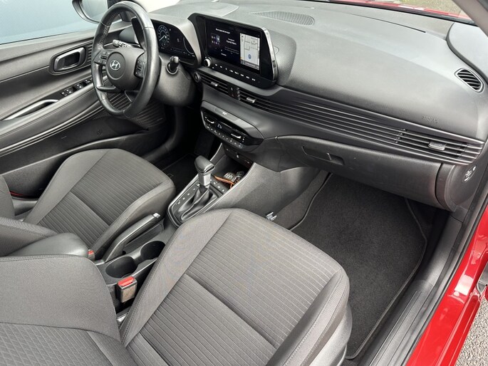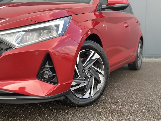 Ontdek de Hyundai i20 1.0 T-GDI Premium Sky van 2021, beschikbaar bij Autobedrijf Kooy Oud-Beijerland b.v. Deze luxe uitvoering in het rood is een pareltje op de weg. Met een vermogen van 99 PK en een cilinderinhoud van 998 CC, biedt deze hatchback zowel stijl als prestatie.